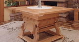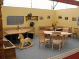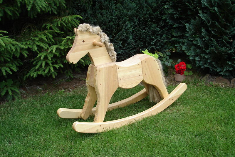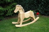 | Rothenburger Tisch Eiche massiv 120 x 120 cm H 77 cm | Schaukelpferd Kiefer massiv Länge 120 cm Sitzhöhe 46 cm Gesamthöhe 80 cm |